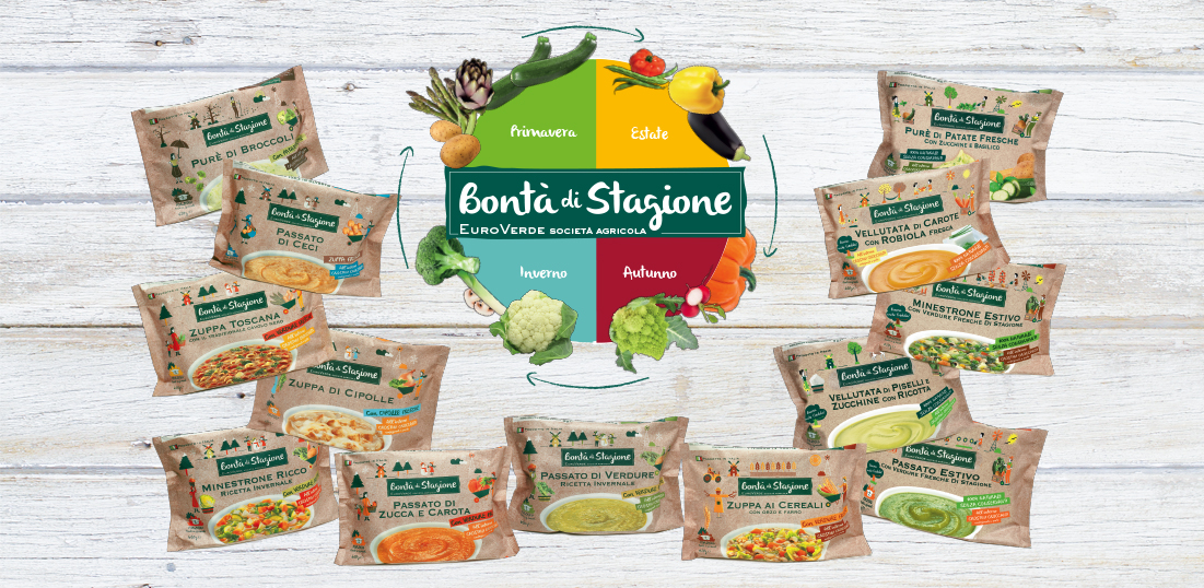 Euroverde è specializzata nella trasformazione e vendita di vegetali freschi e prodotti ortofrutticoli. L’azienda lancia sul mercato una linea di zuppe pronte con un plus di prodotto unico: si rinnova con le stagioni, proprio come le verdure contenute nelle sue ricette.