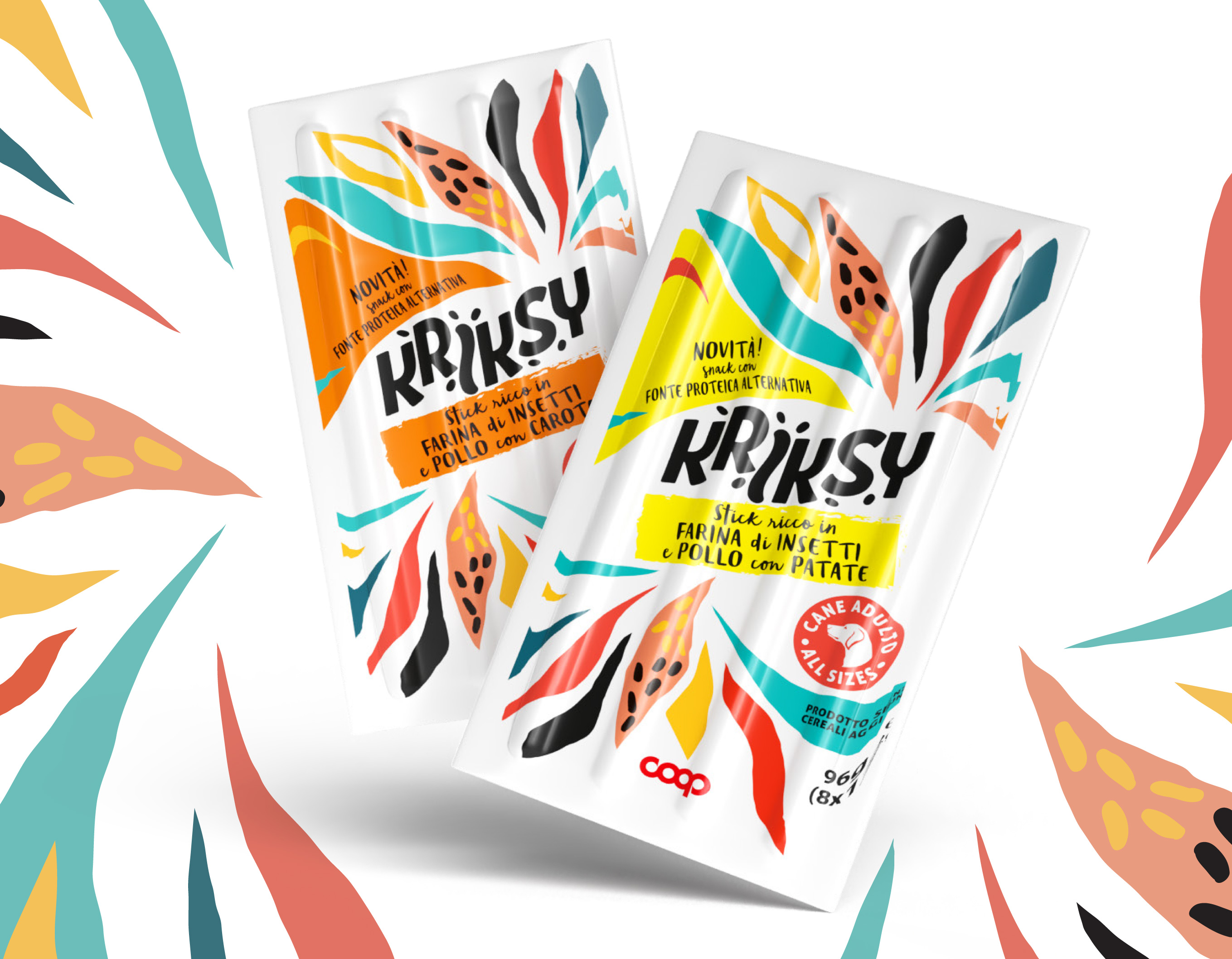 – Kriksy, una linea innovativa ricca di una fonte proteica alternativa: la farina di insetti. Si rivolge ai proprietari di cani e di gatti più inclini all’innovazione e a sperimentare nuove soluzioni. In forma di snack o premio, si presentano in confezioni dall’aspetto fresco e moderno.