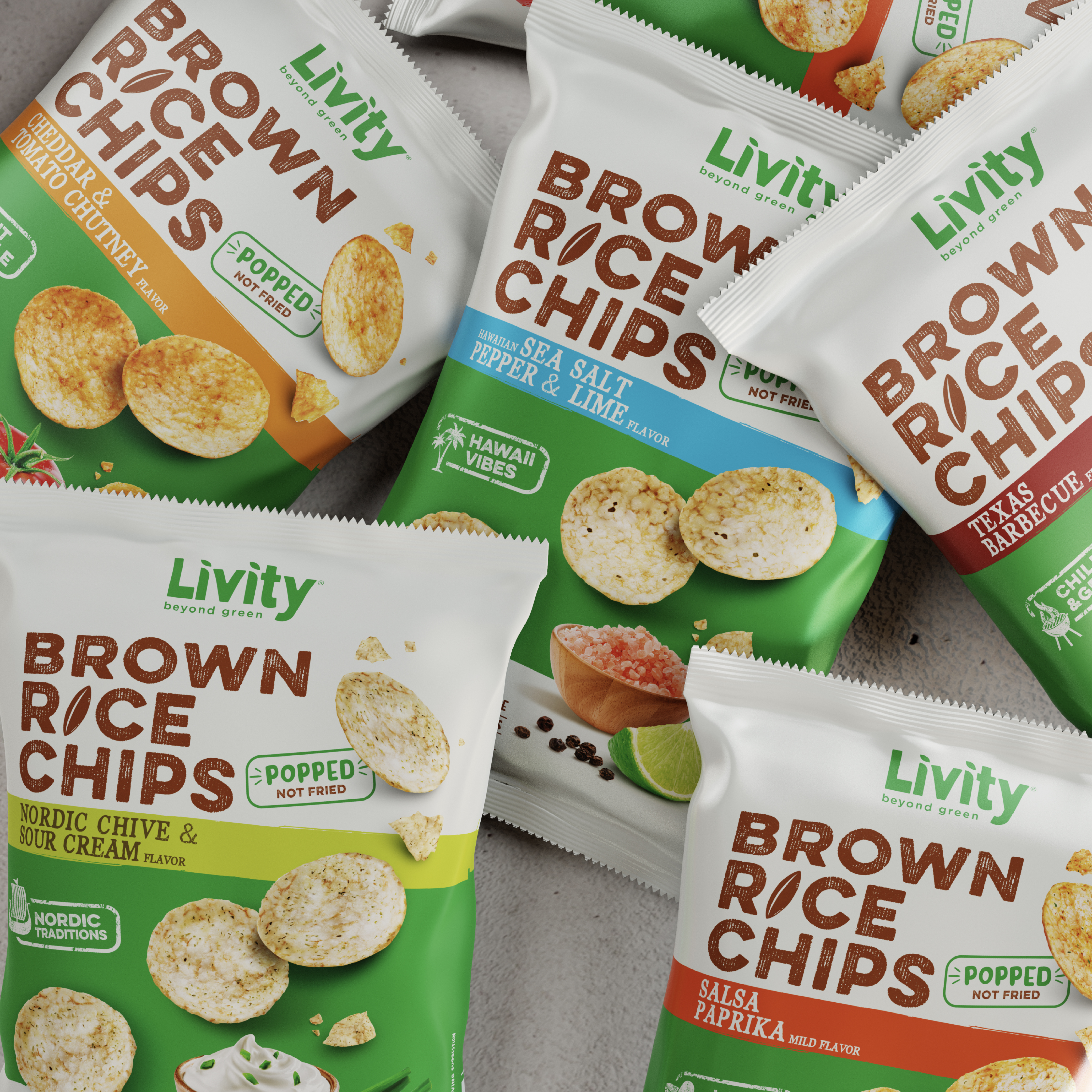 Il brand è Livity, una linea di snack a base di riso integrale che si rivolge a un target consapevole e attento alla salute.