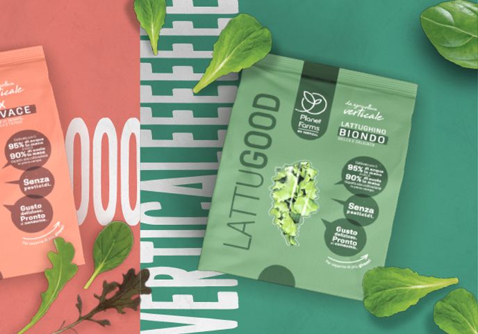 Un’identità visiva dirompente per un progetto che ribalta l’orientamento del mercato: da orizzontale a verticale. Da oggi l’insalata non cresce più negli orti di campagna. E la sua immagine non è più verde. È di tutti i colori di un gusto che ti sorprenderà, grazie al rivoluzionario paradigma di Planet Farms – e al design firmato Break.