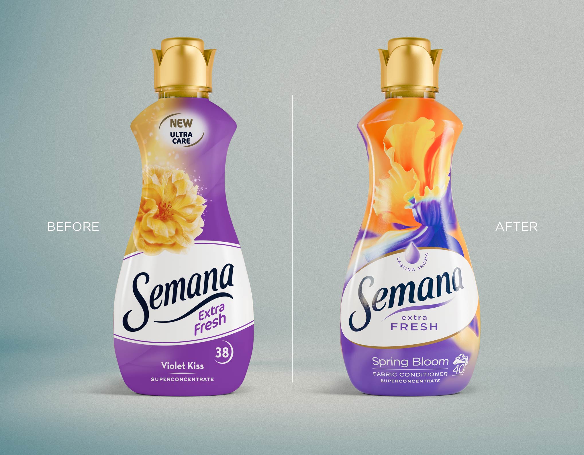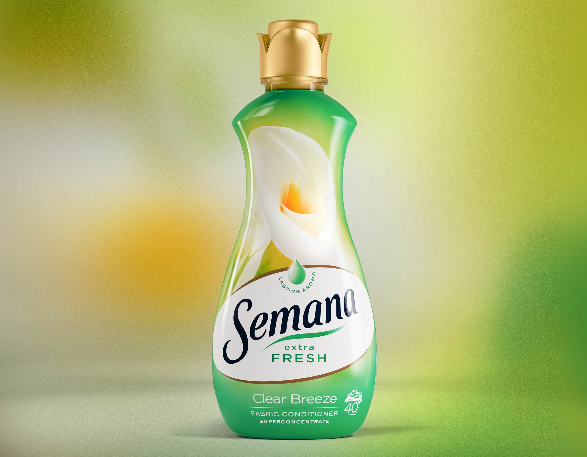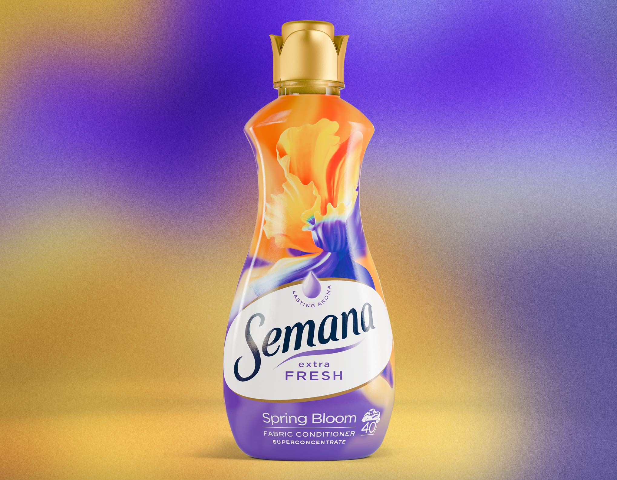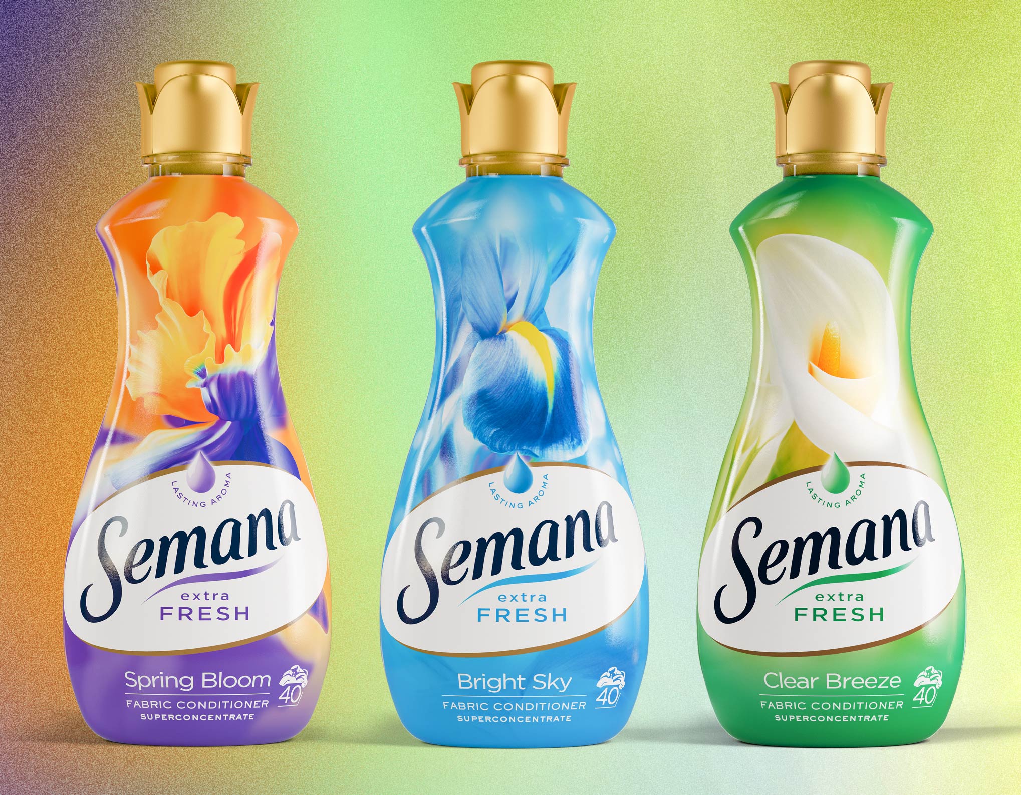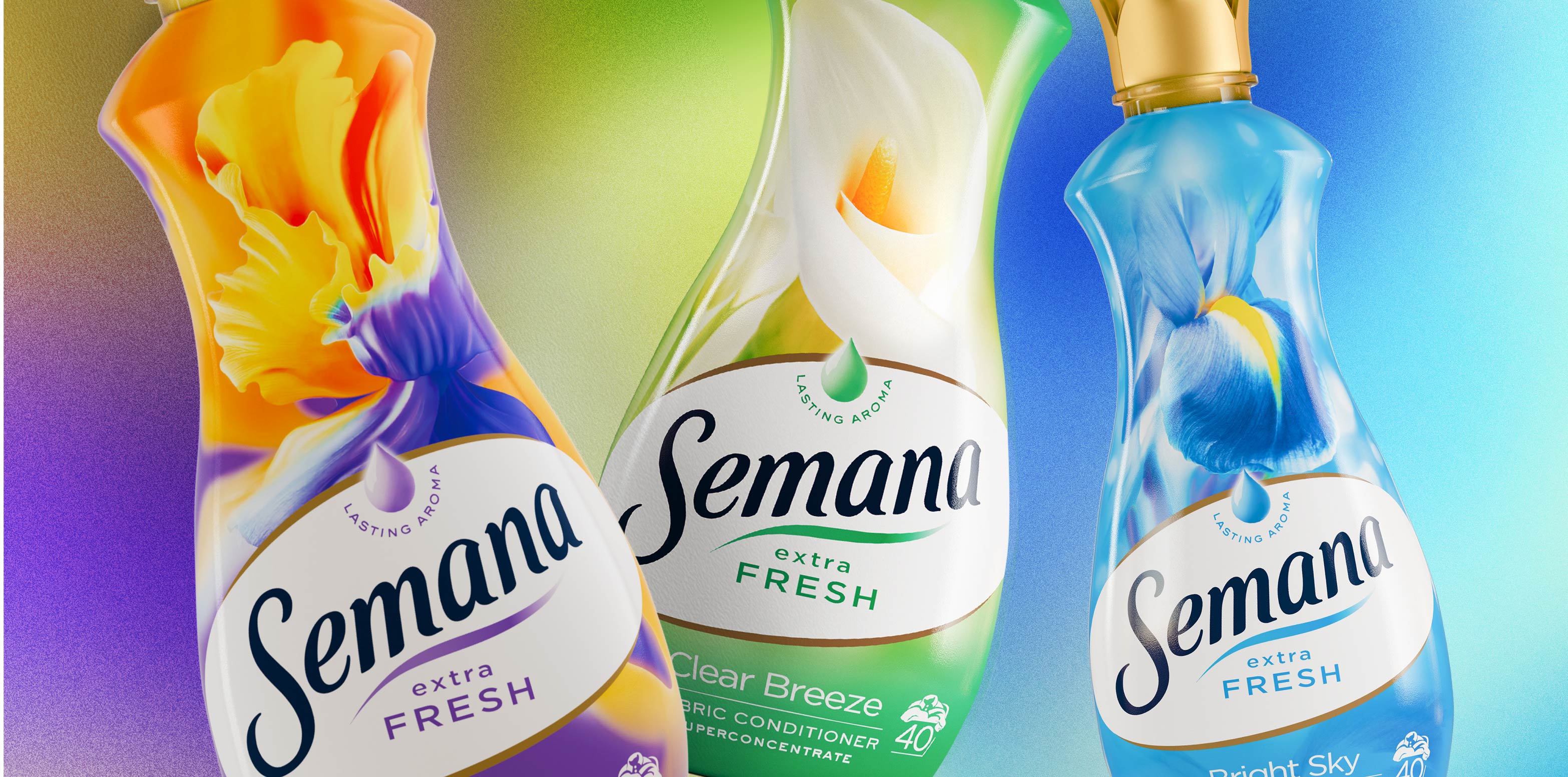 Il nuovo packaging di Semana mette senza dubbio in evidenza il suo nuovo USP: fragranze freschissime che durano più a lungo.