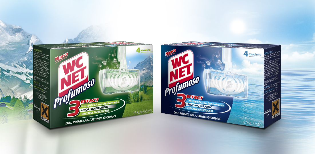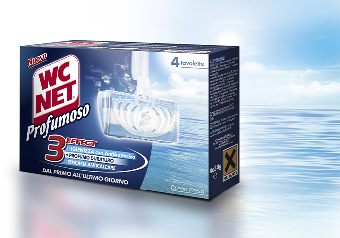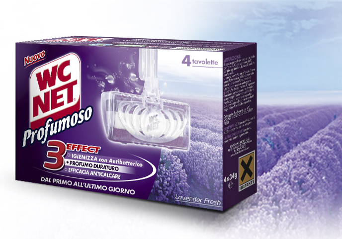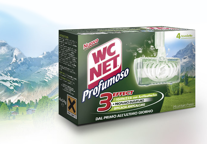 L’efficacia tecnica del prodotto è stata sottolineata riunendo l’elenco delle sue caratteristiche sotto il logo “3 effect”. Il claim “dal primo all’ultimo giorno” ne sottolinea la qualità, punto di forza di WC NET profumoso, e lo distingue dai suoi diretti concorrenti.