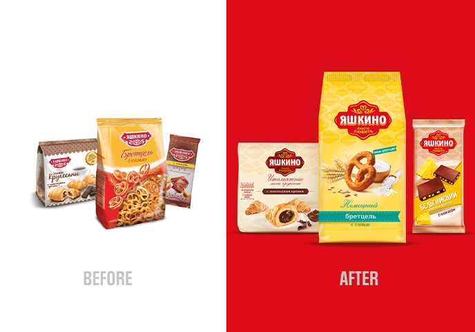 Yashkino è il primo e più importante brand di KDV, gruppo che opera nel mercato alimentare russo da 25 anni. Sotto il brand sono commercializzati ben 65 prodotti: un assortimento in grado di soddisfare le esigenze di un ampio target, dai più giovani agli adulti. L’ampliamento della gamma, tuttavia, è avvenuto nel corso di molti anni ed ha portato a una frammentazione dell’immagine, oggi datata e priva di coerenza. Il potenziale appetizing appeal dei prodotti, inoltre, è poco evidenziato.
