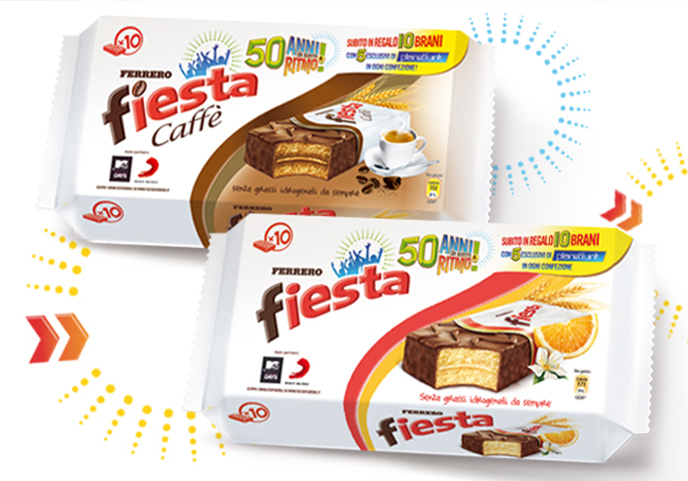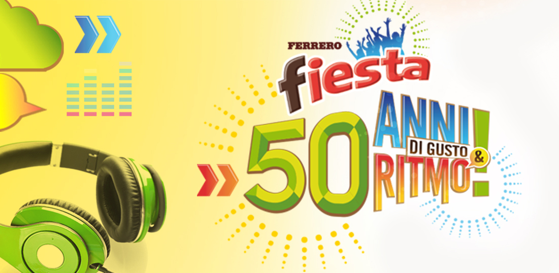Fiesta compie 50 anni. Per celebrare il suo celebre snack, Ferrero lancia una promozione in collaborazione con MTV e Sony. Grazie a un’ investimento di rilievo l’iniziativa regala 10 brani da scegliere tra i successi degli ultimi 50 anni, 5 dei quali remixati per l’occasione dai Planet Funk. L’operazione deve ribadire il posizionamento storico del brand “il gusto che riaccende il ritmo”, riaffermandolo in chiave moderna dopo un lungo periodo in cui non sono state apportate innovazioni di prodotto.