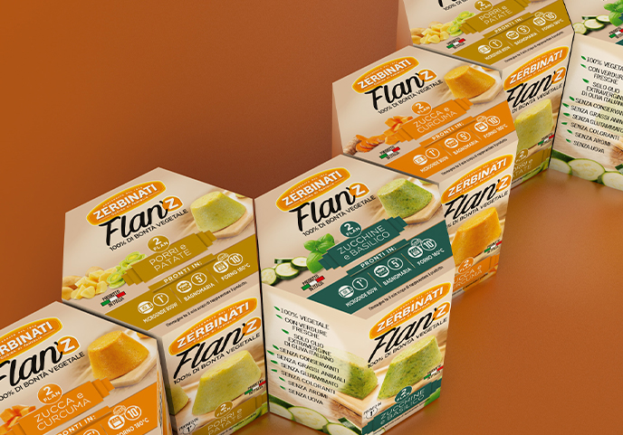 Oggi Zerbinati lancia FlanZ, una preparazione interamente vegetale che può essere consumata come antipasto, secondo piatto, contorno o aperitivo. È un lancio che apre la strada a una nuova categoria di piatti pronti nel banco frigo del supermercato.