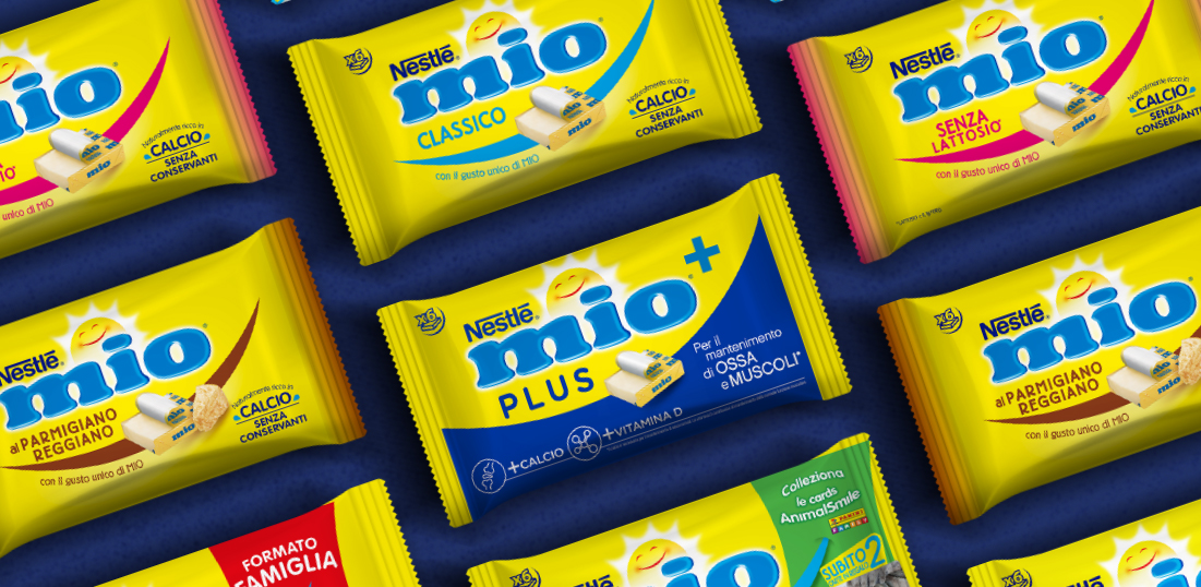 Formaggino Mio, prodotto storico di Nestlè, è il brand leader nel mercato di riferimento. È un marchio nel cuore di ogni consumatore: da oltre 80 anni porta gioia sulla tavola di ogni bambino e si posiziona come il formaggino per crescere con un sorriso.