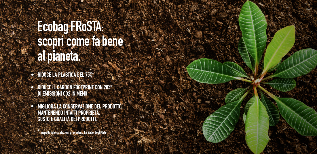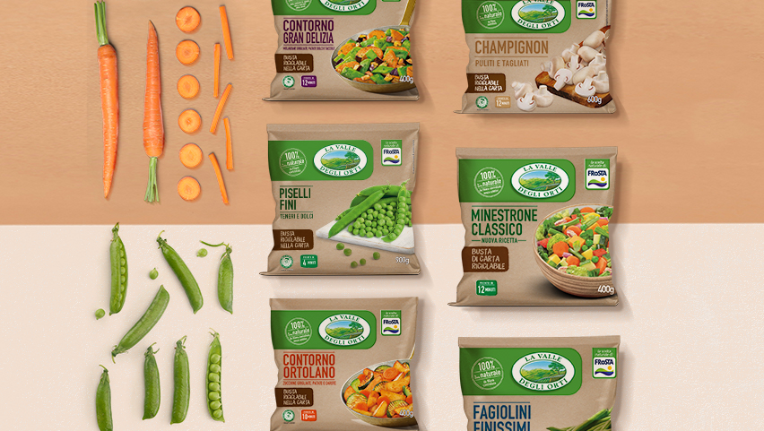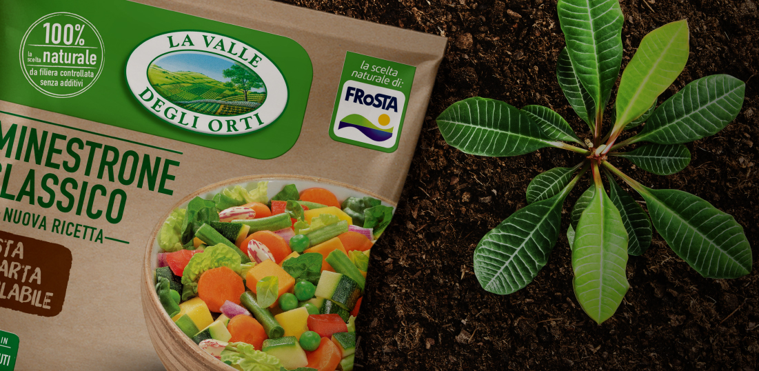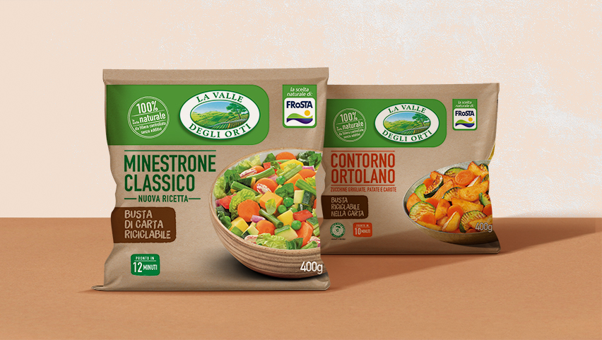 Frosta è uno dei principali attori nel mercato di alimenti surgelati in Europa. Da sempre è focalizzata su una produzione naturale e sostenibile, una scelta che oggi la porta a lanciare Ecobag, il primo packaging per surgelati riciclabile nella carta. La novità, grazie a un mix di materiali, punta a una diminuzione delle plastiche monouso e debutta sul mercato italiano con La Valle Degli Orti, Brand di riferimento per minestrone e verdure surgelate.
