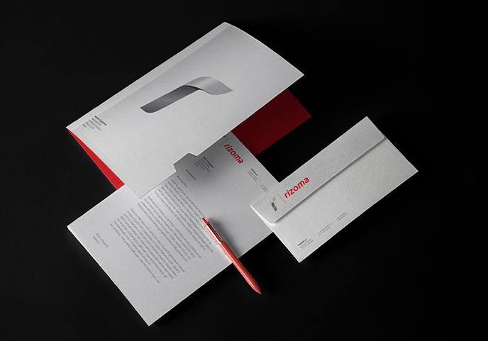 In vista di una potenziale “brand extension”, il nuovo logo perde il rosso, colore aggressivo e tipico del mondo motociclistico, a favore di colori propri del mondo del design. Un nuovo segno grafico dà maggiore riconoscibilità e modernità. Il suo colore richiama l’alluminio, il materiale in assoluto più usato nella produzione Rizoma.