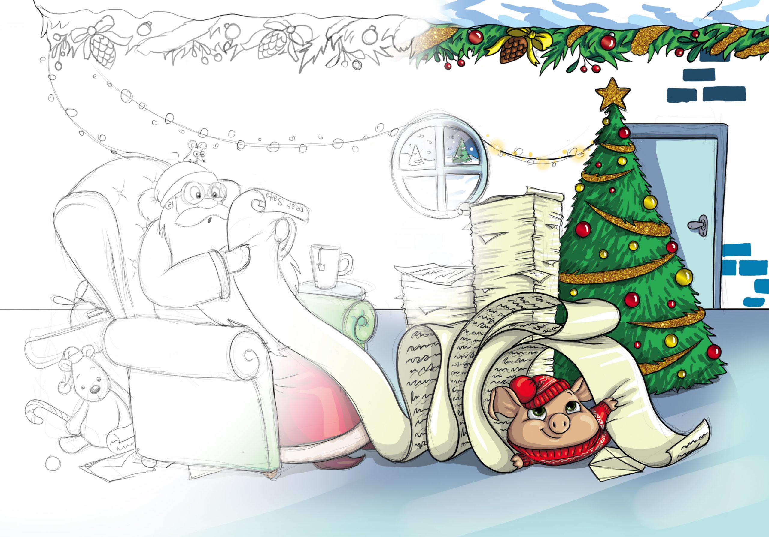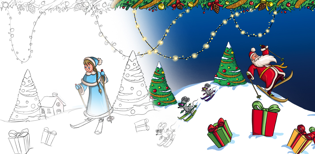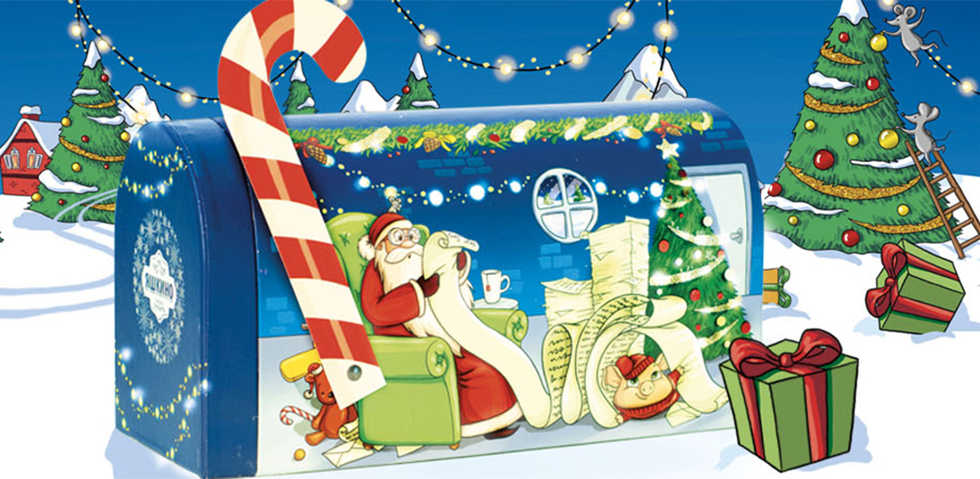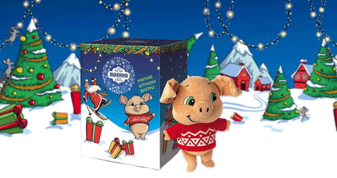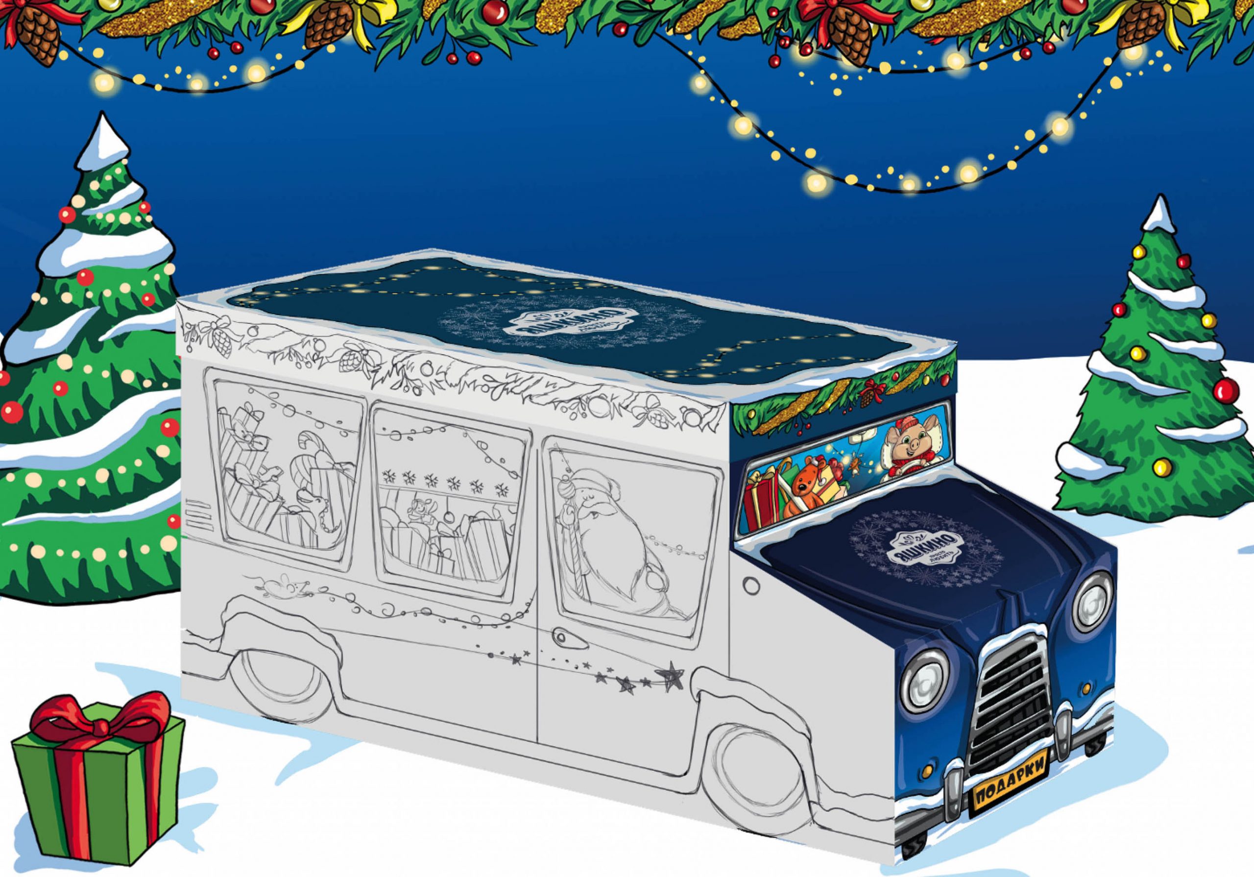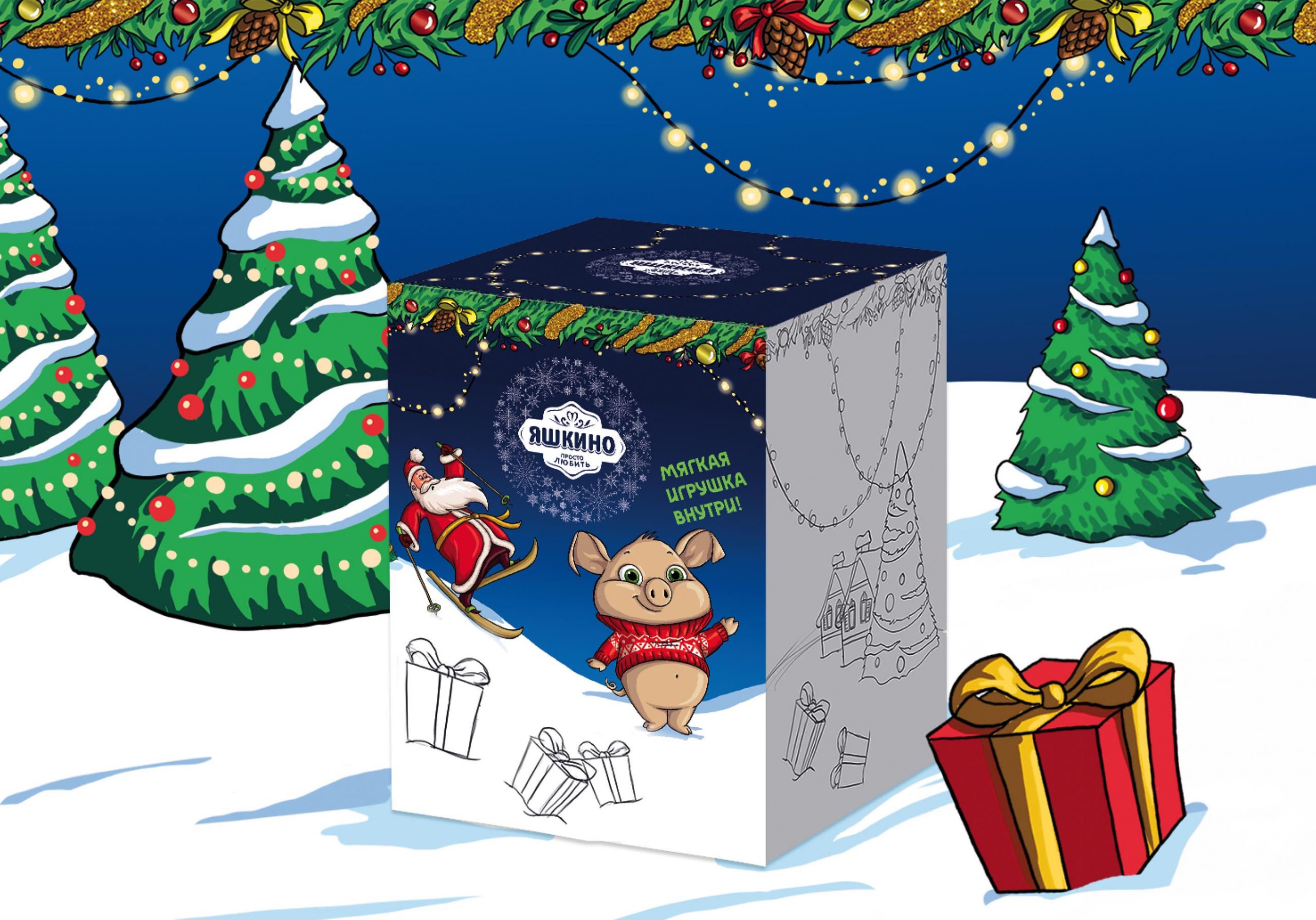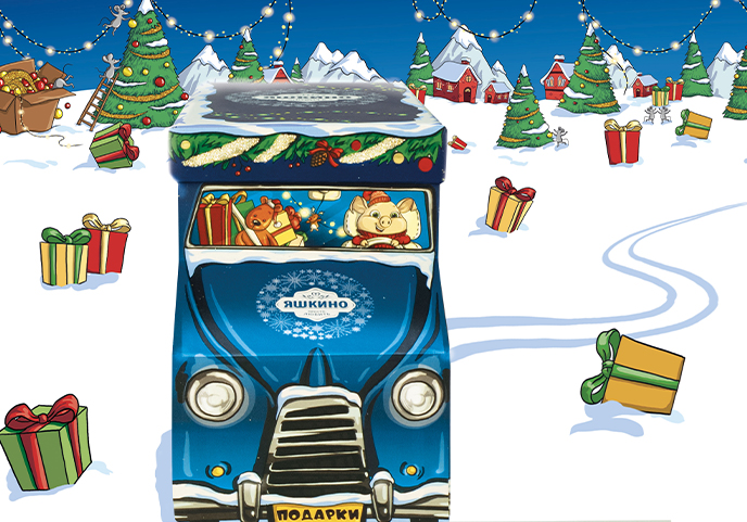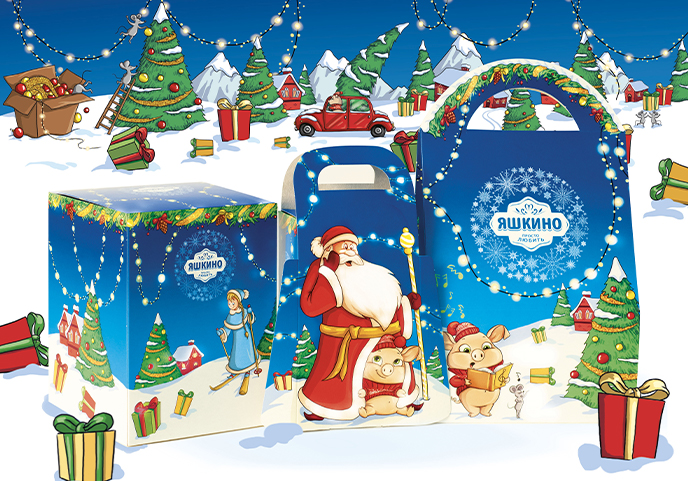 Attraverso personaggi interamente disegnati a mano, è stato creato un racconto che si sviluppa su confezioni dalle forme giocose: da sacchi di natale e mailbox a giostre e furgoncini. Il fondo è sempre blu, uno dei principali colori natalizi secondo la tradizione russa. La scelta aiuta a mettere in risalto il rosso degli elementi disegnati, tra cui lo stesso Babbo Natale. Fra i protagonisti compare anche un maialino: disegnato ad hoc, rappresenta l’avvento del 2019, anno del maiale secondo lo zodiaco cinese. Un peluche del personaggio (di cui l’agenzia ha seguito ogni aspetto della produzione), è uno dei regali all’interno delle confezioni.